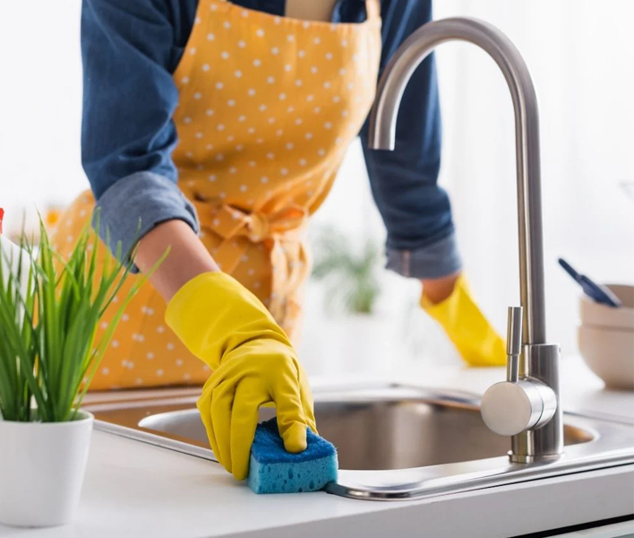 - Sink & Fixtures: Scrub and polish sink, taps, and handles.